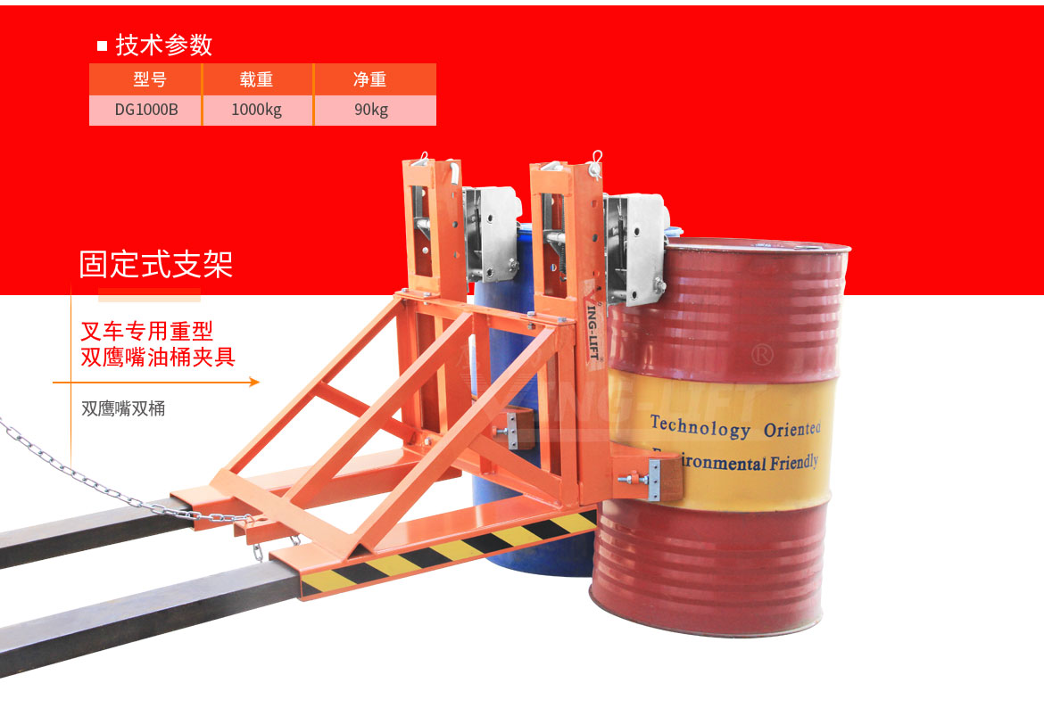 DG1000B叉車專用重型雙鷹嘴油桶夾具